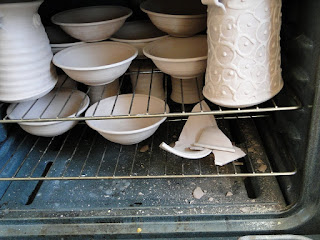 So… I’ve been pushing thing through the process to get a few more things done before the Bluff Country Studio Art Tour. This morning I has the brilliant idea to heat greenware in the oven to make sure it was dry before putting it through a bisque fire. Everybody does that sometimes right? I do that more than I probably should. And usually with no problems. But today, I forgot to set the oven temp really low and accidentally left it at 350 degrees. Fortunately, most of the pieces were already dry, but the one that wasn’t didn’t fair so well.