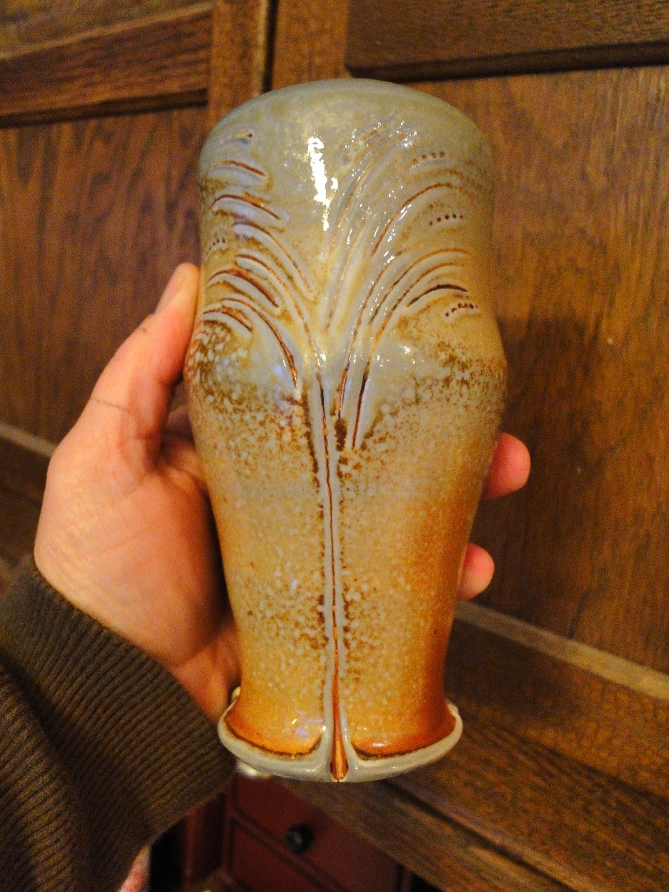Addition to my Cupboard by Sue | Nov 18, 2010 | Uncategorized I purchased this awesome tumbler from Joy Tanner recently. She always does interesting carving on her pieces before putting them through a wood/soda firing. It will work great for milk at dinner tonight.