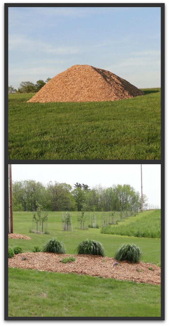This wonderful pile of wood chips had been delivered at the farm/studio just before the long weekend so one of our early tasks was to get the chips spread on all the flower beds and around the trees along the driveway. It didn’t take long but sure did make a difference in how all the plantings looked.