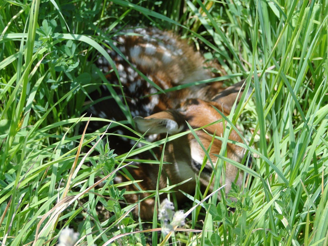 After going to the Highland Store for breakfast on Sunday (another one of my favorite rituals on weekends at the farm) we found this little fawn in the grass about 30 yards from the studio. Patiently waiting for mom to come back to get her. How cute is that??