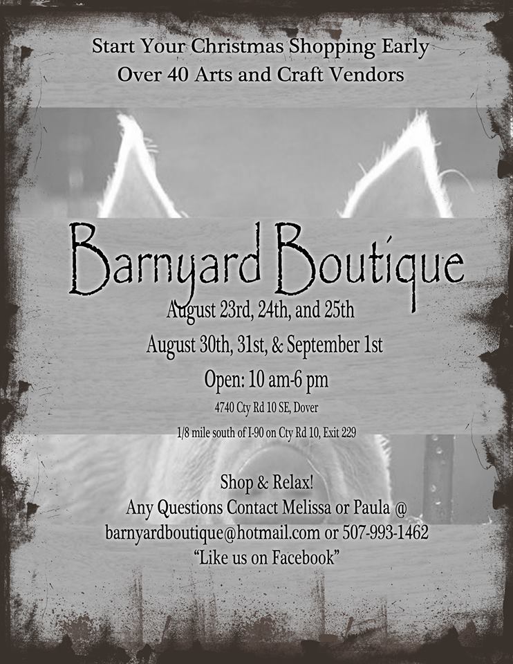 The Barnyard Boutique in Dover Minnesota is coming up in a couple weeks. Located on a quaint farm just a short drive from Rochester, this event is a must attend for anyone looking for unique pottery and gifts.