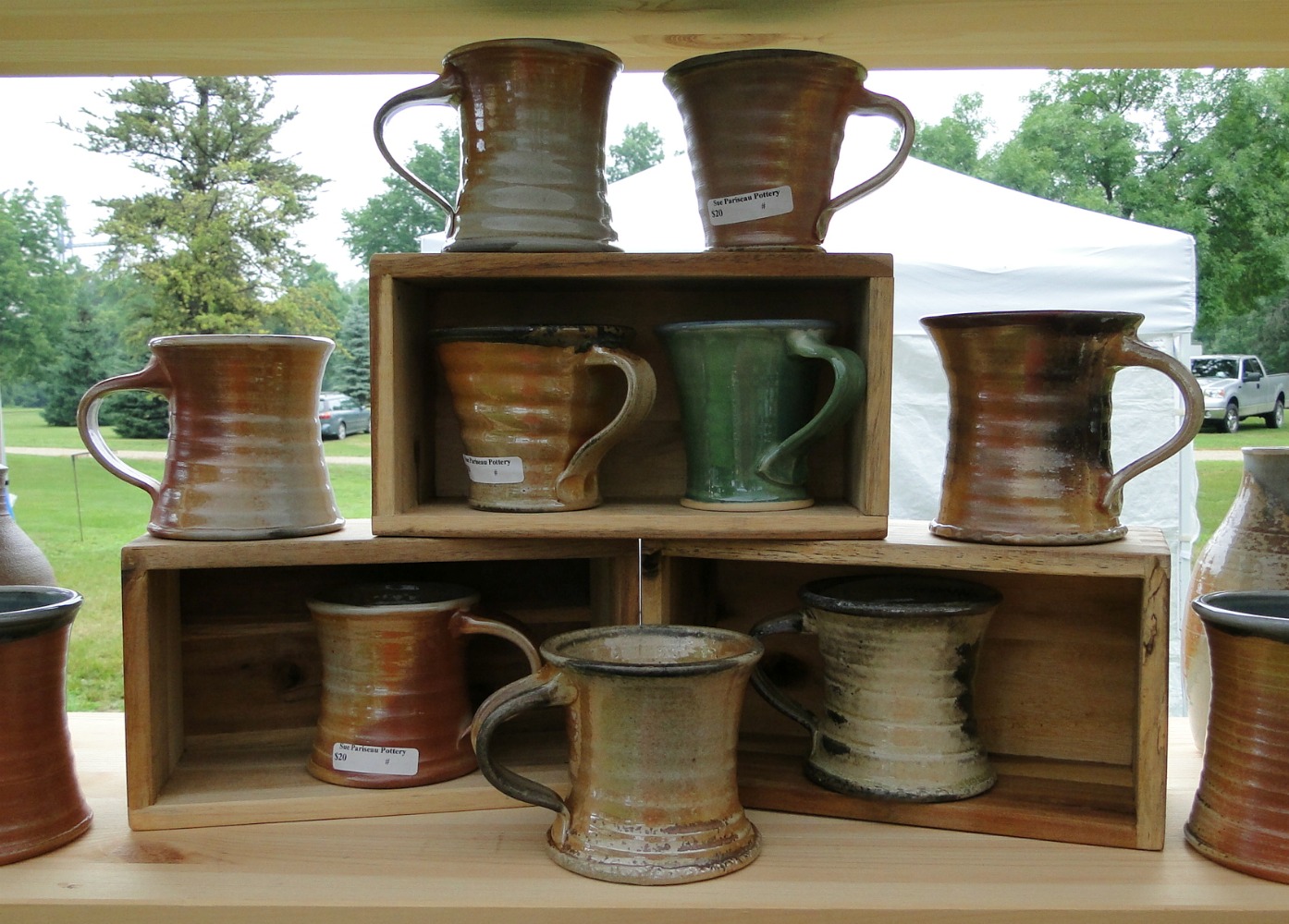 After the last couple firings, I have a nice collection of mugs. I always seem to be shore on mugs in my inventory, it was very nice to start a show with a good inventory including many different sizes and shapes.