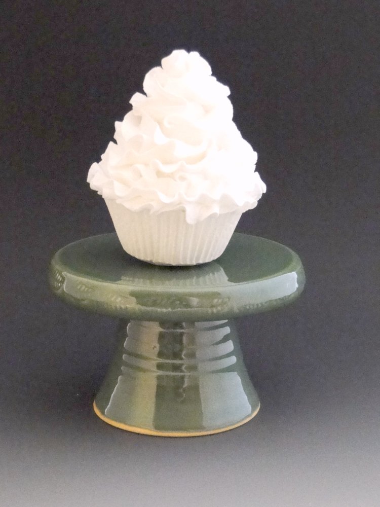 One of the things you may not know about me is that I love cupcakes. So it seemed only natural to make some cupcake stands. This one was my trial one and I’ve made several more with carved pattern around the top to go in the next wood-fire. I’m anxious to see how those turn out.