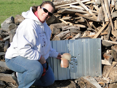 It's sad that pots sometimes end up as target practice, but I particularly like the shard pile under our target boards. Sharp, but pretty. 🙂