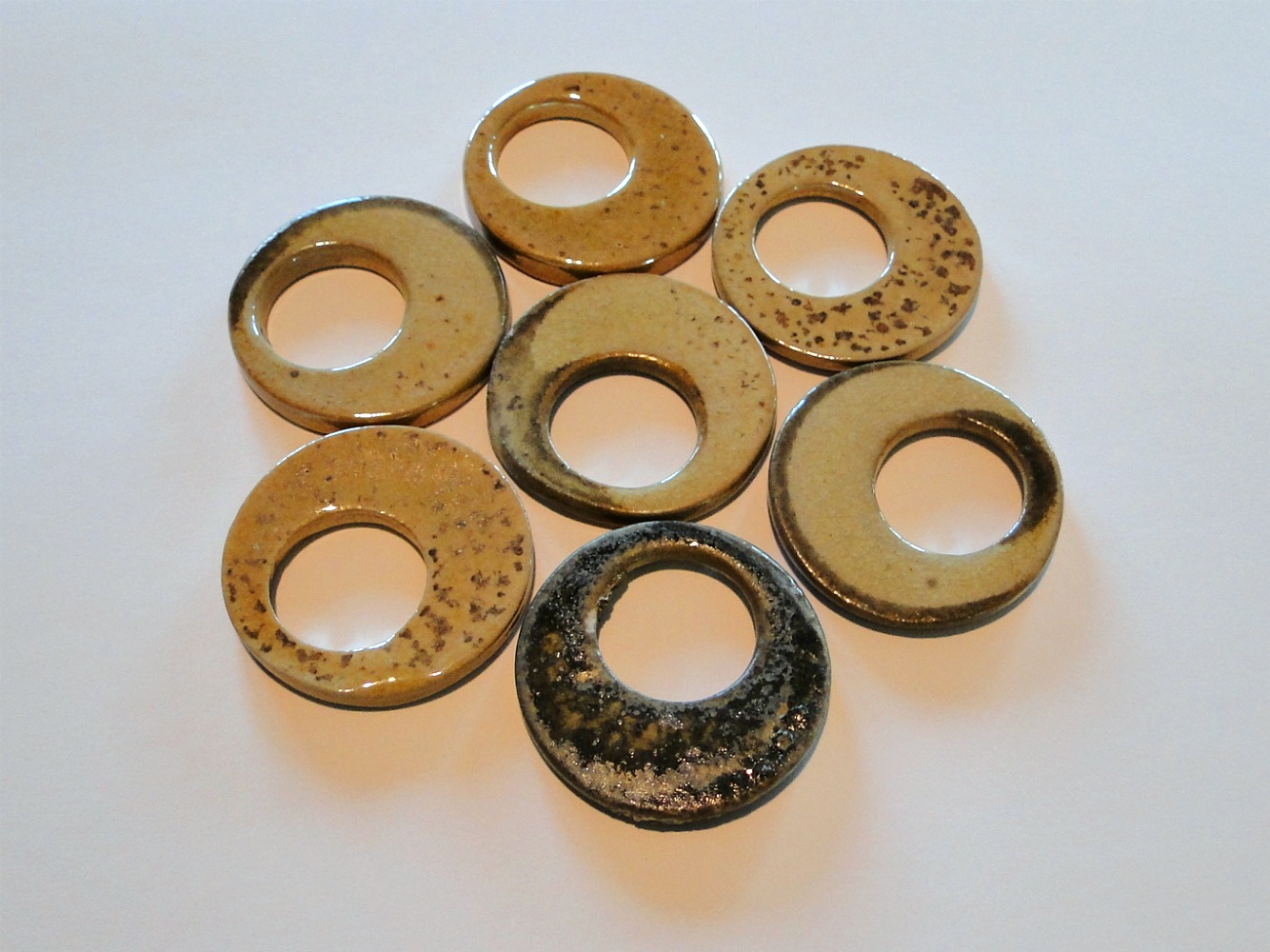 They make great fillers in the kiln so I’m thinking I may make several more and some buttons for my next firing. The ones above are just bare B-Clay, but I think a nice Oribe would look great too.