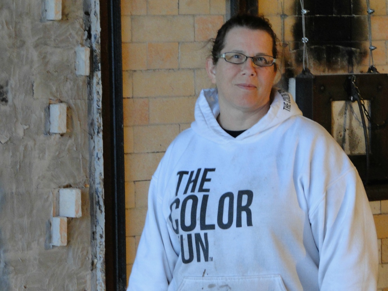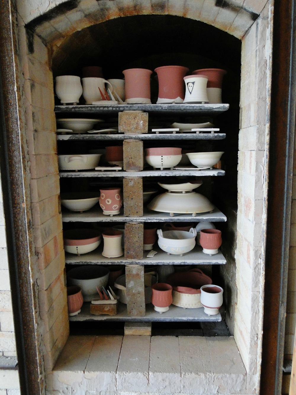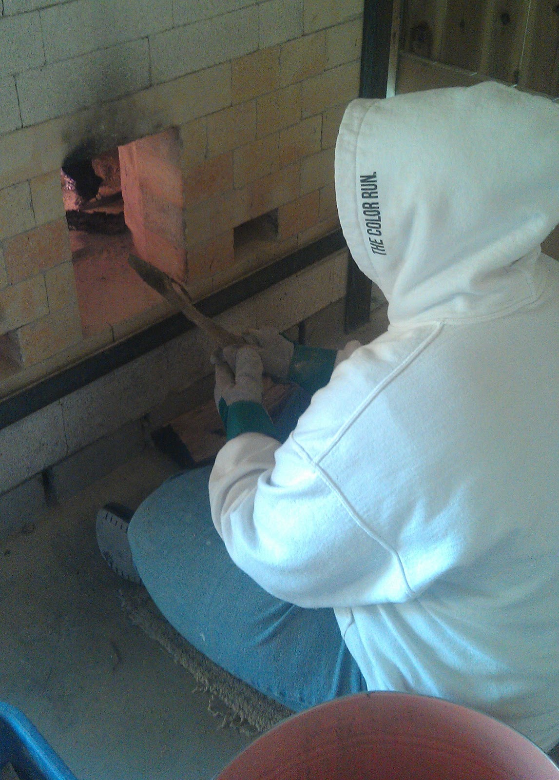 Do you have to wonder why someone who knows they are going to get just plain filthy firing, decides to wear a white sweatshirt? Because my “It’s OK if I’m dirty, I’m a potter” sweatshirt wasn’t around. It makes perfect sense.