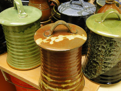 Fresh Outta The Kiln by Sue | Jun 15, 2010 | Uncategorized | 3 comments I unloaded these fun canisters from the kiln this morning. I can’t decide which is my favorite, though I’m probably leaning toward the one front and center, Iron Red and Beige. Which one strikes your fancy? 3 Comments Mr. Young's Art on June 15, 2010 at 5:25 am I like the one to the right of that. The one with the little waterfalls of glaze sheeting down the sides. Sue Pariseau Pottery on June 15, 2010 at 11:14 pm The black and green combo are fun and kind of new for me. Thanks. Kim Hines on June 24, 2010 at 1:55 am i like all of them!