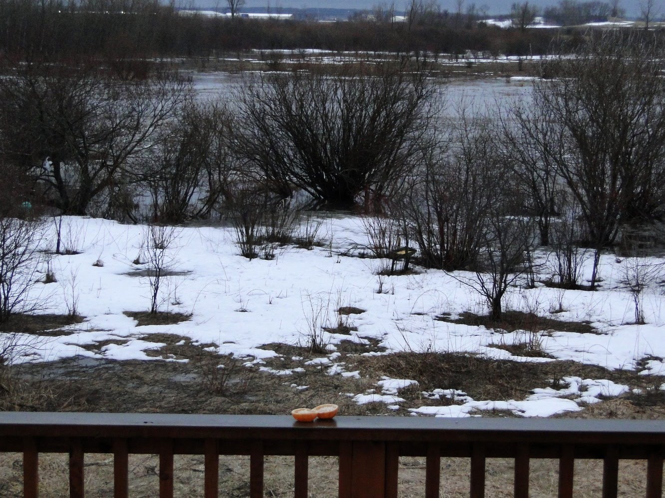With our record snow fall of the past winter melting and the rain we’ve been getting lately, the stream and wetland behind the house have really been rising and filling up. We can’t normally see water from the house, but today, it’s just a couple hundred feet away. With more rain and snow due the next couple days, I hope it doesn’t come up much higher.