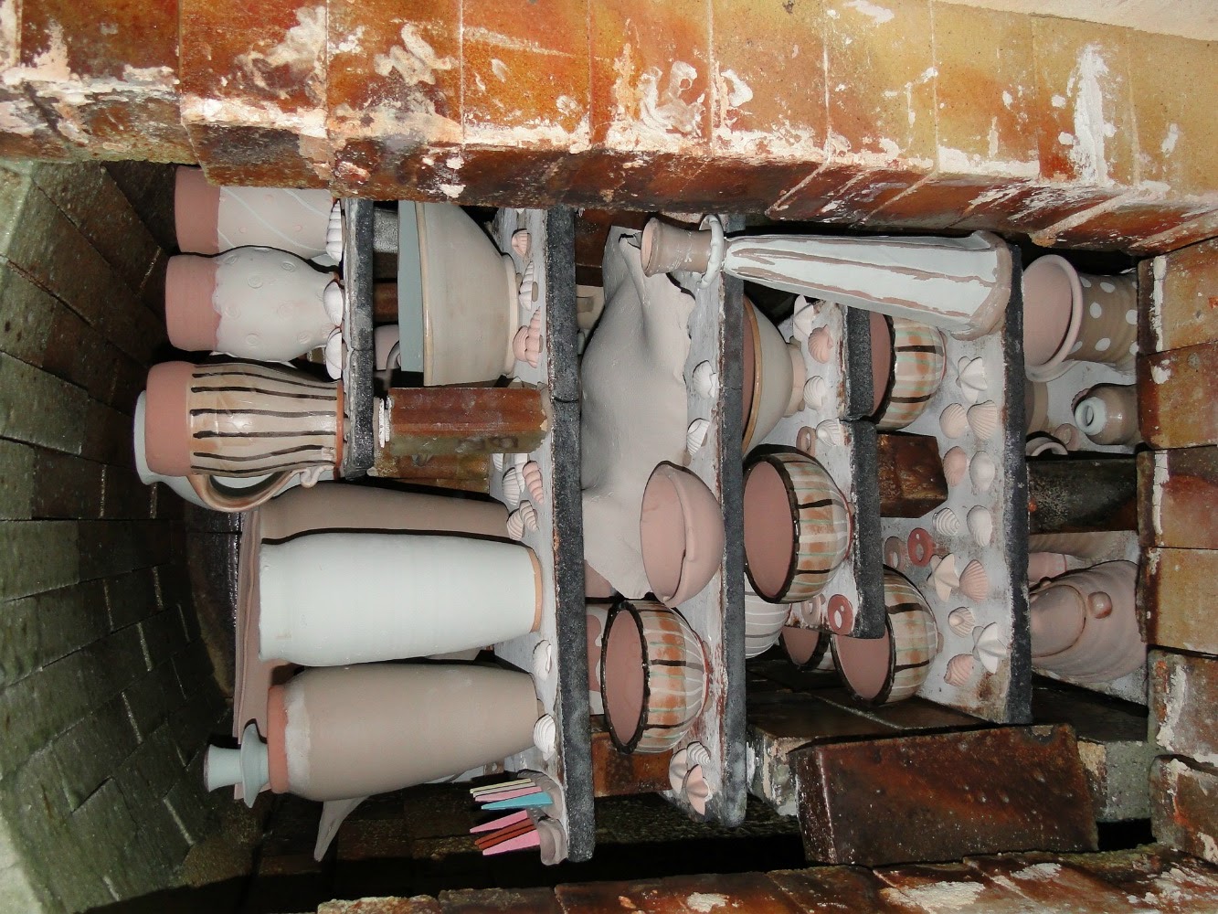 Late in the day yesterday, we finished loading the kiln and Lori started the fire early today.