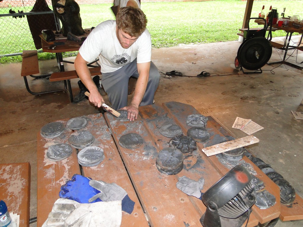 A couple days later, everyone’s molds were placed in Sylvan Park around the furnace that would melt the scrap iron to become our plaques.