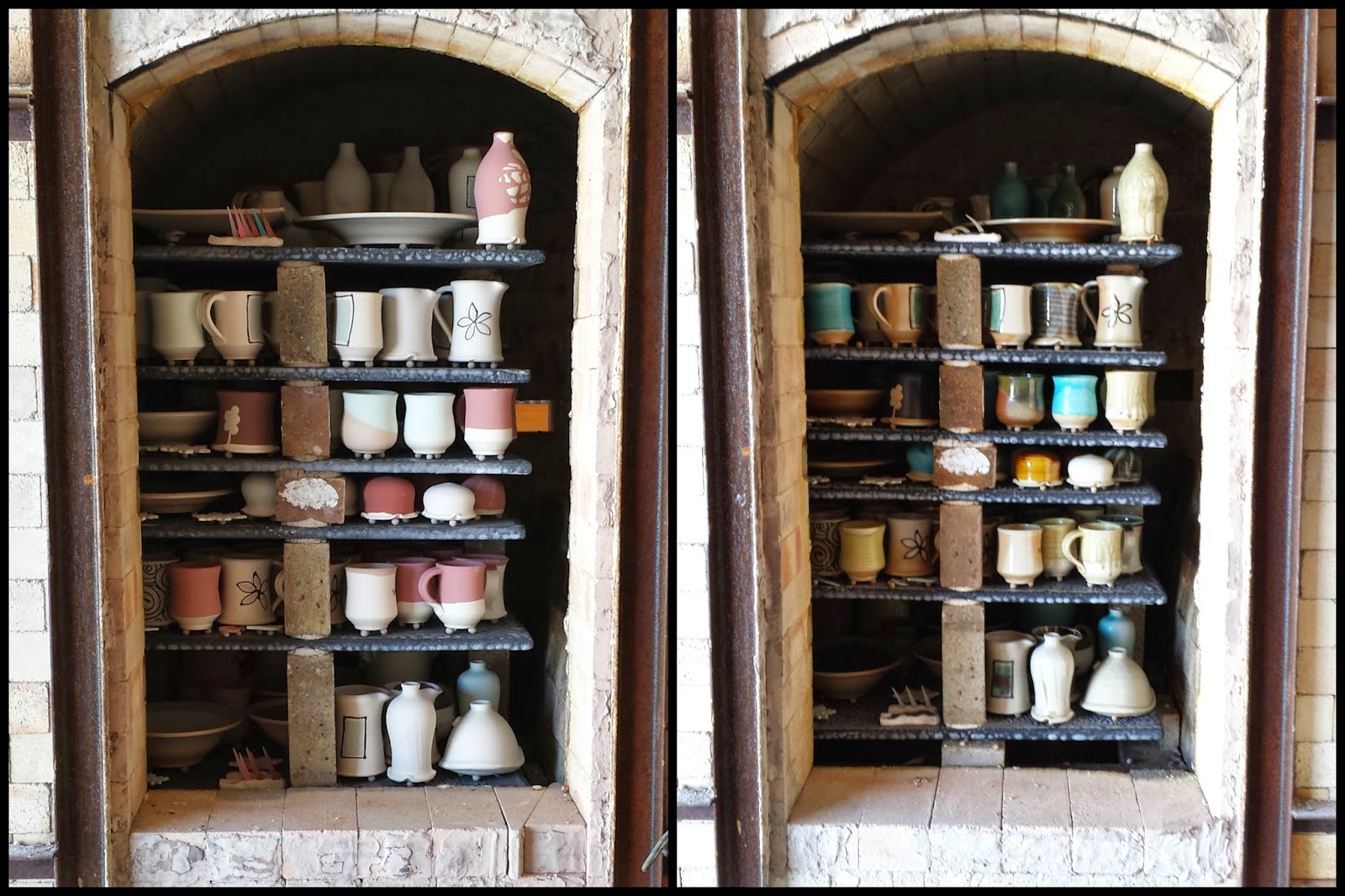 We fired the kiln on Thanksgiving, finishing up on Black Friday. The following Wednesday, I quickly snapped my after photo and unloaded so I could have the pots ready for my Holiday Mud and Suds Sale that Friday. A little whirlwind like, but the timing worked out great.