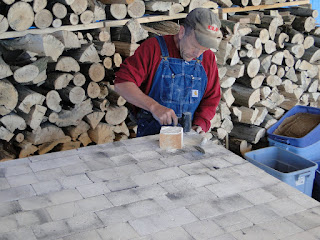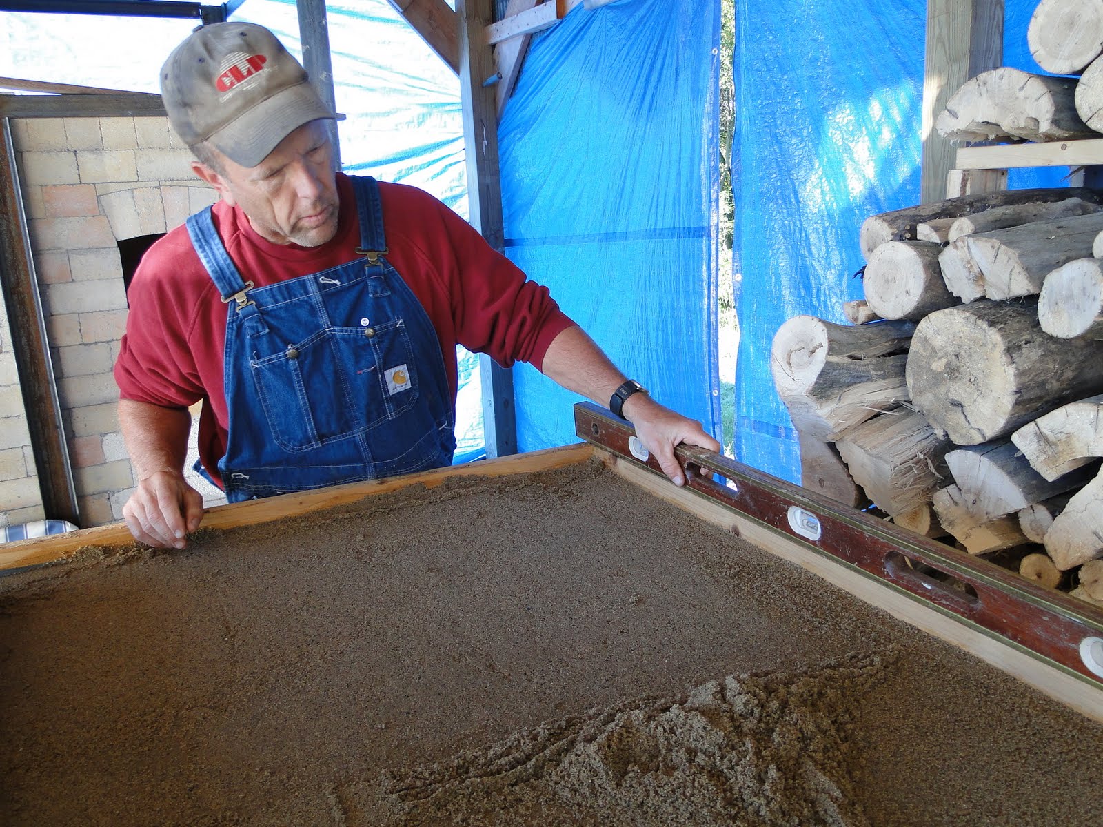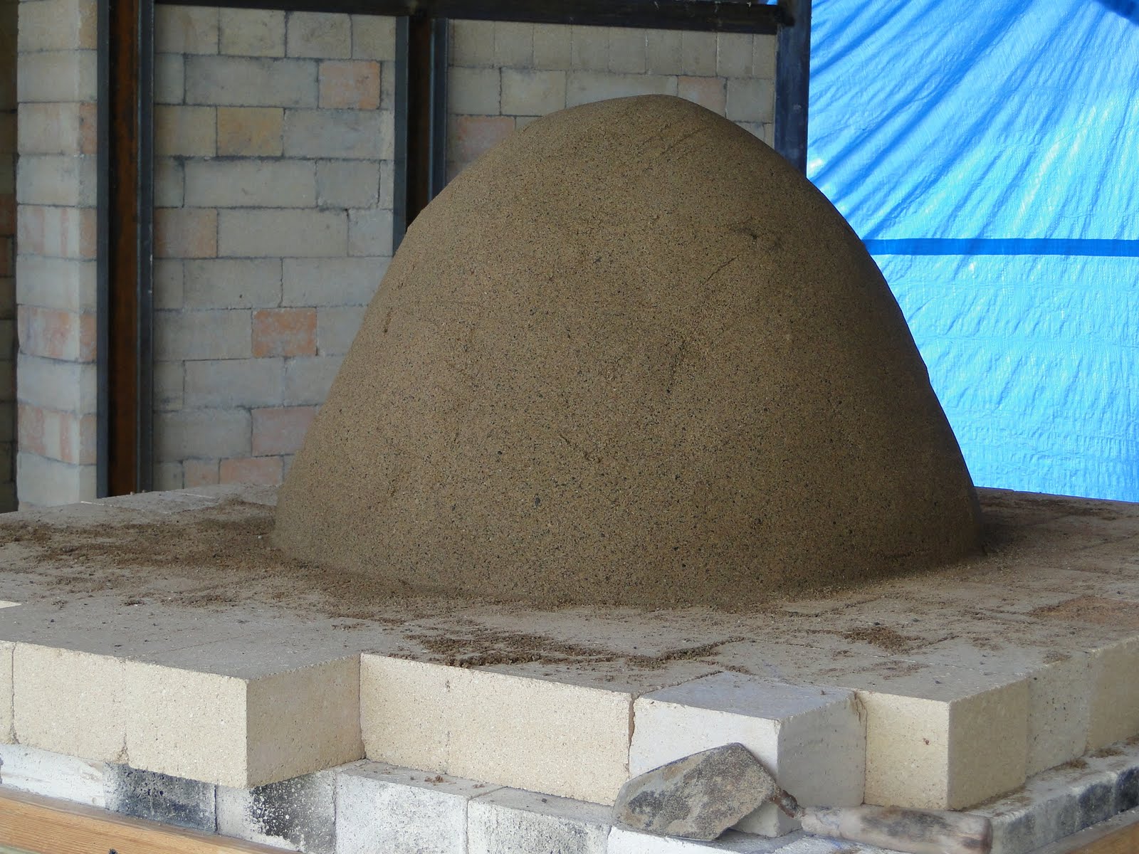 Next, a dome of sand is placed on top of the fire bricks to create a mold for the oven shape
