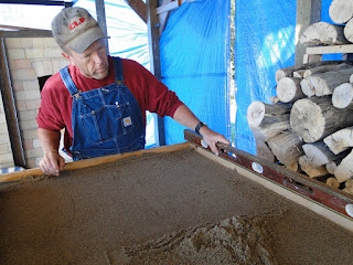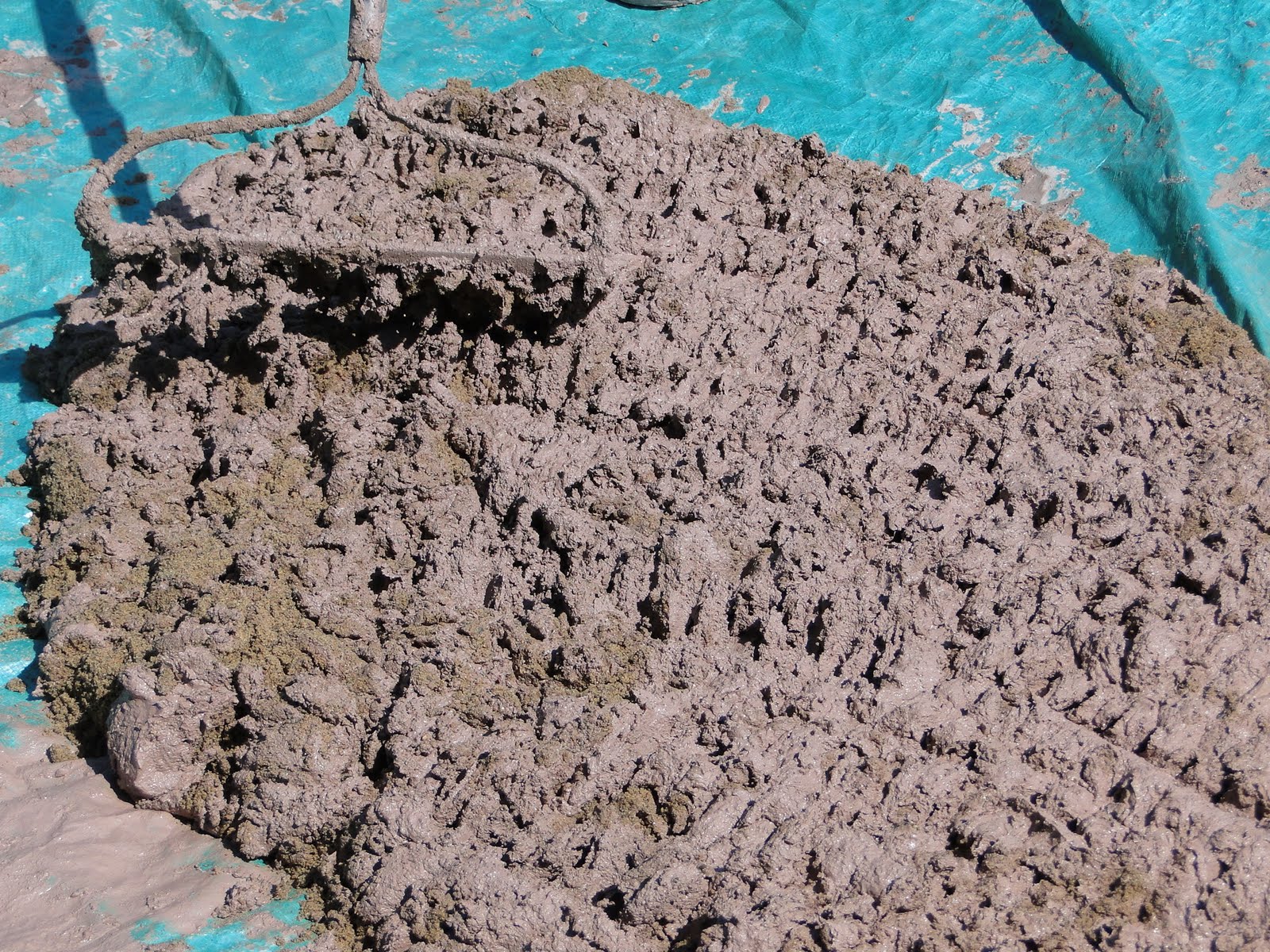 On a tarp we mixed sand with the mud (clay) we moistened earlier.