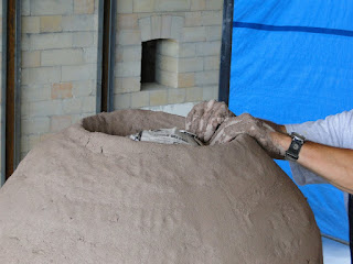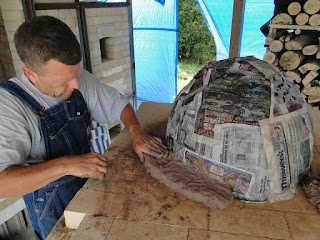 And that’s where the weekend ended. This layer on the oven will dry slowly for a while. Next it will receive a layer of clay and insulating material and followed by a third layer of clay. Check back in a couple weeks for the next segment of construction.