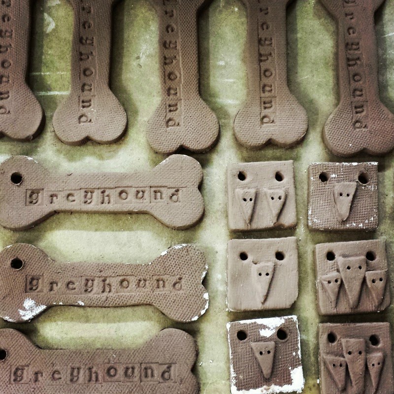 Other designs include angels, stars, trees and a studio visitor this week made these greyhound ornaments and pendants.