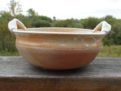 Photos of Favorites by Sue | Sep 28, 2011 | Uncategorized Here are a few of my favorite pieces from our wood fire. Dotted Bowl Check out that color – it’s almost metallic looking Slip Decorated Bowl Textured Handled Bowl Pendants Square Dish Trio of Ewers