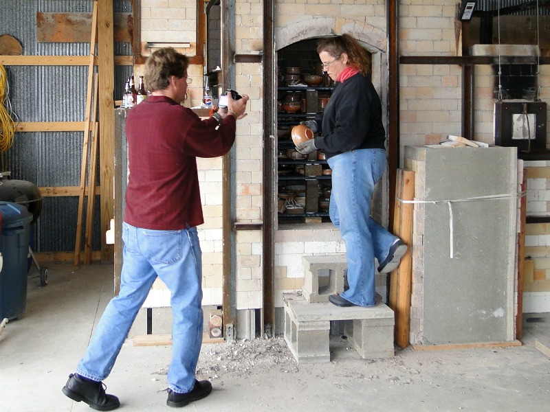 During the firing and again during the unloading, we had cameramen from KSMQ’s Off 90 program here shooting video for a potential segment on their story telling program about people, places and events off I90. During the firing they were using a big TV camera, I think I accidentially splashed glaze on it a few times. For the unloading, they used a smaller SLR-like camera and it was easier to forget the camera was there.