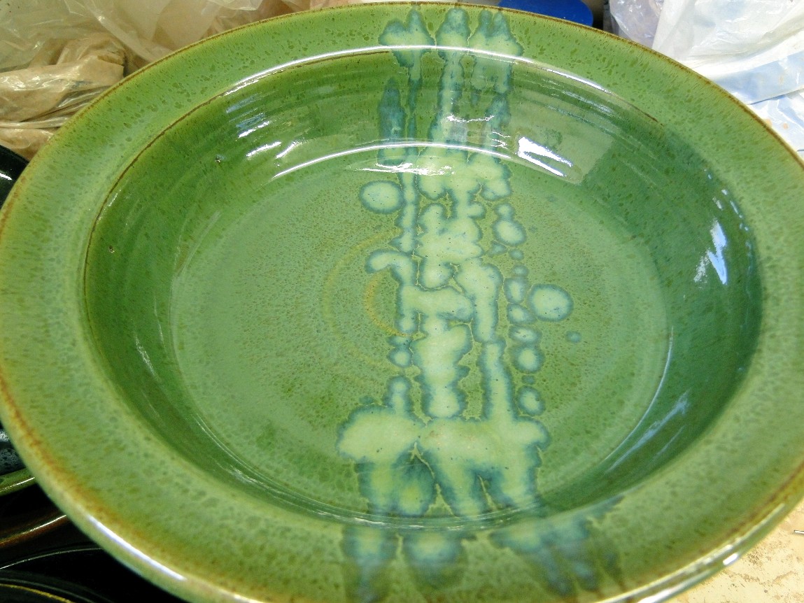 It’s a glaze combo that is a little more reliable on horizontal surfaces giving this pie plate a glassy depth.