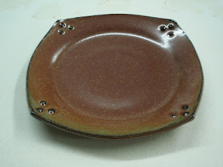 In spite of all this help, I’ve continued my efforts to stockpile the items most frequently sold during my summer sales. Throwing in a few fun, creative pieces as the fun wears off making 40 spoon rests in a sitting. I’ve recently been making some plates that start out like a typical thrown salad size plate, but after trimming the foot ring, I reshape the rim to a rounded square shape. I really enjoy the altered shape and think when they’re paired with a thrown dinner plate they make a great place setting. The hardest part is catching them at the right stage of drying to be able to trim the foot ring yet the rim isn’t too dry to cut smoothly with a sharp knife. If it gets too dry, the edge of the rim crumbles and chunks off instead of cutting cleanly. But challenges are part of the fun. Right?