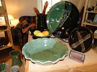 Thank you to everyone who stopped out – it was great to meet you!Check out the awesome green and black glaze combo on the large bowl (and try not to notice the sleeping roadie on the couch getting a little rest before people show up. Roadies work really hard to help us put on events like this and when possible it’s good to let them get a little extra rest during slow times).
