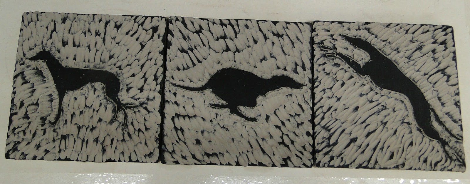 Today, a group of folks from Northern Lights Greyhound Adoption were in my studio for a tile making workshop. They created lots of tiles, ornaments and other items with a greyhound theme.